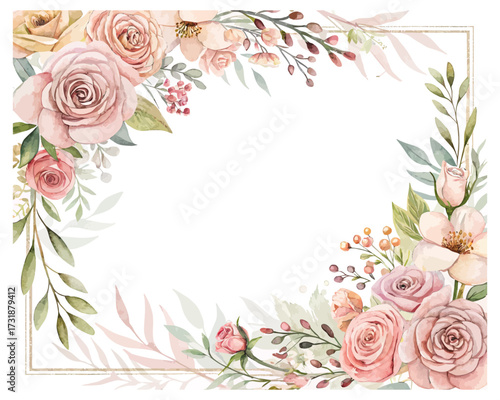 Watercolor Flower Frame for Wedding Invitation Card Design vector illustration