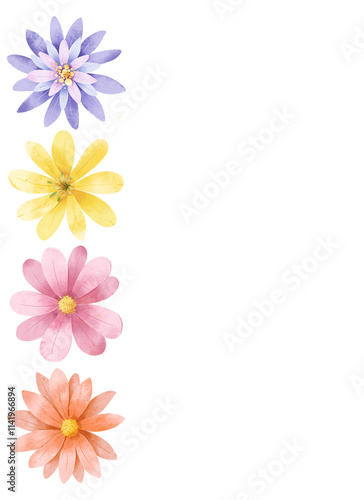 Watercolor flowers, floral background, frame, border for greeting card, invitation and other printing design. Isolated on white background. Hand drawing.