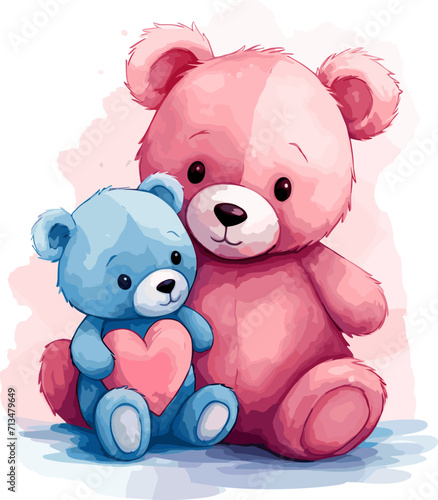Watercolor illustration of a blue bear with a red heart for a Valentine's day card