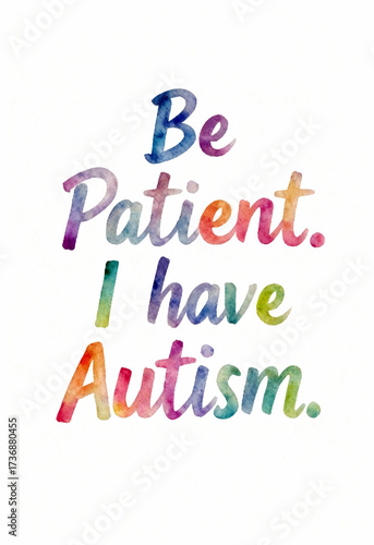 Watercolor lettering saying be patient I have autism on white background highlighting neurodiversity empathy communication support and autism awareness