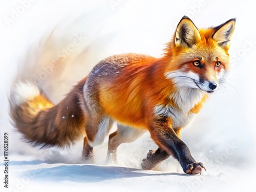 Watercolor Macro Fox: Dashing Red Fox with Bushy Tail, Isolated on White