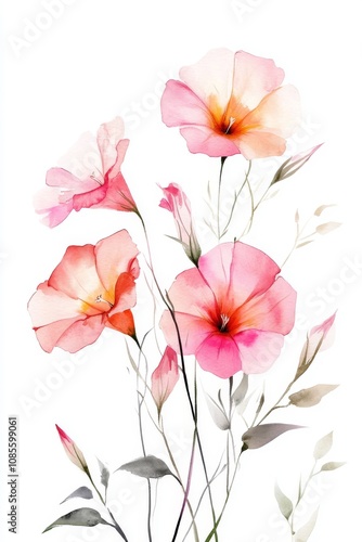 Watercolor Morning Glories on White Background Minimalist Floral Art