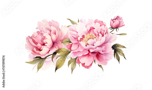 Watercolor pink peony large beautiful flowers print poster vector illustration wedding engagement