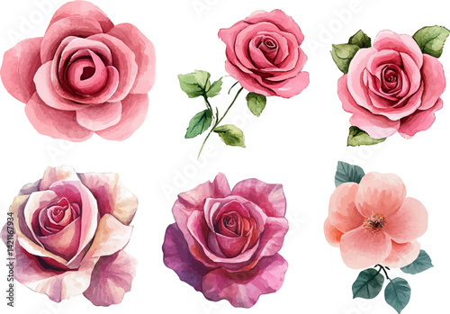 Watercolor Pink Rose Blossom