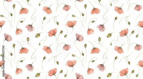 watercolor, poppy, flower, seamless pattern, floral, background, botanical, illustration, pink, red, delicate, hand-painted, spring, summer, nature, bloom, blossom, textile, fabric, wallpaper, wrapping paper, print, texture, repeat, decorative, elegant, feminine, wedding, invitation, card, design element, template, graphic, art, natural, plant, garden, pastel