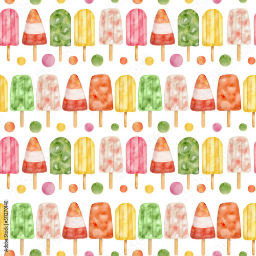 popsicle, summer, seamless, pattern, watercolor, ice, cream, fruit, background, dessert, illustration, red, kiwi, watermelon, glacé, strawberry, paint, yellow, green, lollipop, party, fresh, delicious, colourful, berry, drawing, cool, white, sweet, isolated, cold, tasty, food, tropical, candy, pop, fabric, wrapping, birthday, happy, bubble, circle, children, orange, line, round, cute