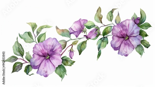 watercolor, purple, flower, botanical, decoration, drawing, element, foliage, garden, hand-drawn, invitation, flower, dark, rose, greenery, frame, peony, isolated, set, plant, greeting, illustration, vignetting, bud, ranunculus, traditional, organic, paint, textile, leaf, green, violet, ornament