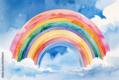Watercolor Rainbow Arc Illustration for a Soft Sky Background
