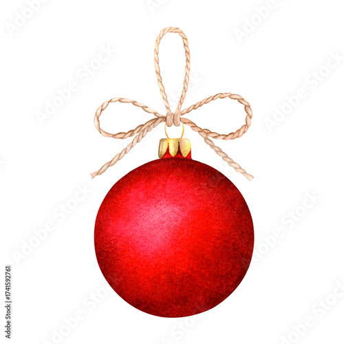 bauble, ball, red, decoration, holiday, festive, christmas, illustration, hand-painted, twine, jute, natural, rustic, elegant, traditional, gold, green, isolated, background, paint, texture, splash, artistic, watercolor, design, pattern, clip art, decorative, shiny, gloss, highlight, vintage, charming, beautiful, greeting card, invitation, wedding, winter, new year, celebration, hanging, isolated on white, seamless pattern, merry, joy