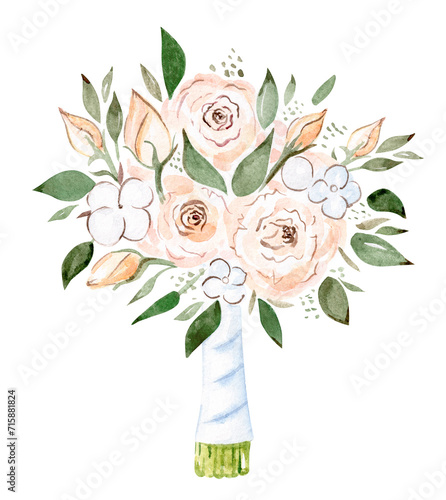 Watercolor wedding bouquet illustration isolated on white