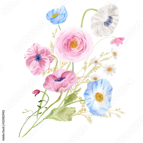 Watercolor wild flowers illustrations , Floral bouquets, watercolor flower arrangements, Elegance flower illustrations