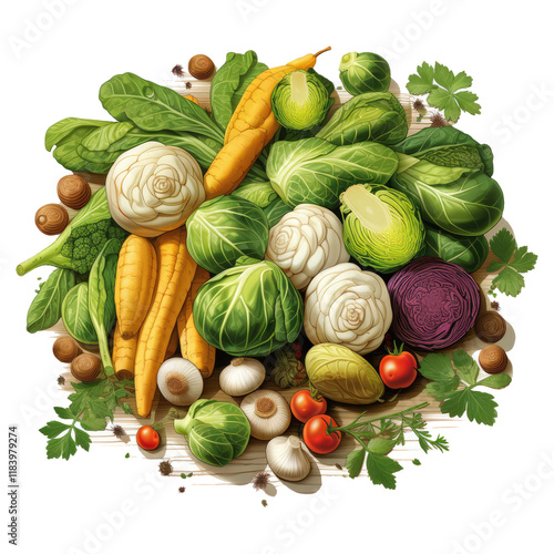 Watercolor Winter Vegetables, clipart Illustration, Generative Ai