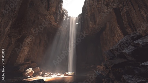 waterfall, canyon, water, nature, mountain, rocky, powerful, flowing, elegant, scenic, natural, environment, photo, landscape, travel, tour tourism, commercial, design, poster, booklet, image, waterfall, creek, stream, vertical, brown, grey, colours, photo, stock, visual
