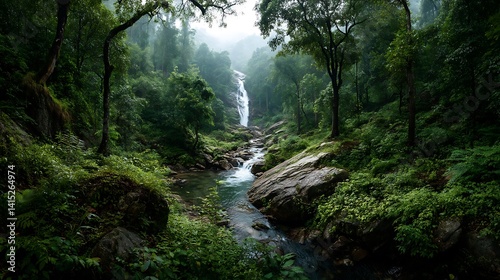 waterfall, river, forest, nature, landscape, tree, water, green, rock, stream, jungle, scenery, cascade, outdoors, environment, wilderness, travel, scenic, mountain, flow, foliage, vegetation, fern, moss, tropical, wood, lush, wild, beauty, stone, adventure, exploration, calmness, serenity, journey, destination, pathway, current, brook, riverside, rainforest, vale, hillside, growth, peaceful, vista, fresh, idylli