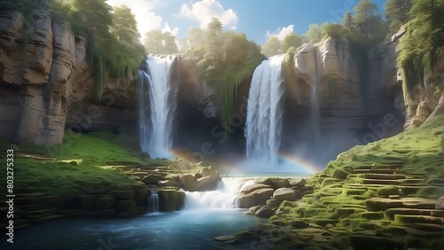 waterfall in the mountains Nature's Majesty The Power of the Waterfall