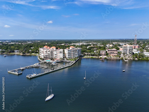 downtown, cocoa, condo, condominium, florida, harbor, bay, lagoon, coastal, boat, river, travel, city, boat, yacht, tour tourism, sailing, moored, view, town, landscape, building, aerial, drone, elevated, urban, coast, summer, waterfront, harbor, port, marina, water