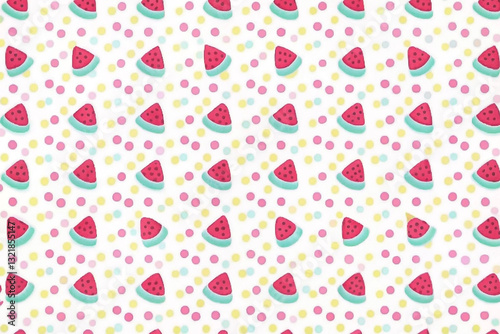 watermelon, slice, pattern, polka, dot, fruit, summer, cute, design, children, background, fabric, print, graphic, illustration, adorable, repeating, colourful, pastel, pink, red, yellow, green, white, food, vibrant, decorative, seamless, digital, wallpaper, textile, kitchen, party, birthday, cartoon, simple, cheerful, sweet, healthy, refreshing, juicy, fun, surface, decor