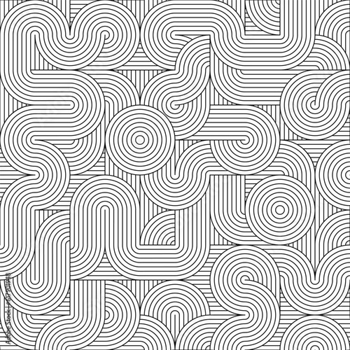beautiful, seamless, modern, monochrome, textile, decorative, geometric, ornament, background, white, black, graphic, abstract, texture, decor, wallpaper, pattern, creative, vector, line, fashion, style, endless, fabric, asian, geometrical, linear, threaded, art, print, vintage, textured, sample, tracery, line, circle, wave, elegant, retro, seamless pattern, twirling, technology, design