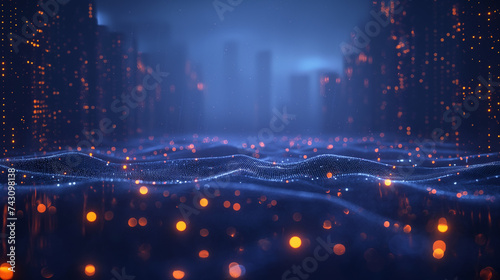 digital, city, landscape, wave, dot, network, abstract, connection, cyberspace, virtual, technically, blue background, neon, wireless, connect, system, future, futuristic, earth, horizon, science, information, security, light, effect, ai, transformation, geometric, triangle, illustration, business, technology, modern, dark, blue, concept, design