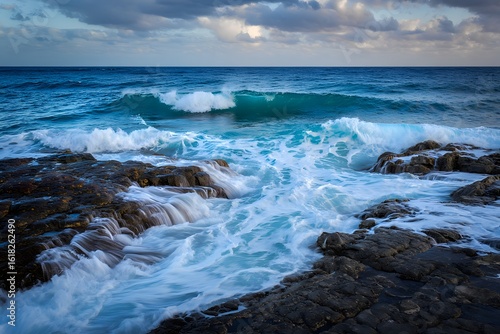 wave, rock, shoreline, ocean, coast, sea, twilight, cloud, water, nature, surf, landscape, marin, outdoors, calmness, scenery, evening, tide, foam, movement, horizon, blue, environment, coastline, shore, geology, beauty, scenic, wilderness, crashing, calmness, seascape, adventure, exploration, coastal, natural, weather, waterfront, dynamic, peaceful, erosion, motion, serenity, spray