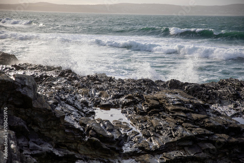 motion, rocky, hitting, sea foam, breakwater, coastline, wet, powerful, beautiful, beauty, white, weather, background, stormy, fresh, texture, cornwall, landscape, travel, ocean, tropical, water, shore, nature, sea, splash, beach, blue, coast, stone, spray, storm, power, rock, crash, wave, summer, scenic, sunshine, foam, pacific, seascape, evening, sunset