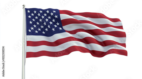 Waving American Flag Isolated on White Background Patriotic Symbol