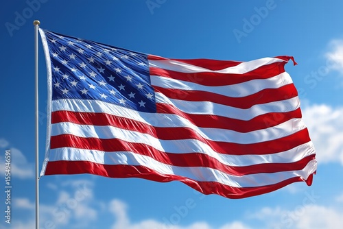 Waving American Flag with Realistic Fabric Texture and Subtle Fraying Under Sunny Blue Sky - High-Resolution Material for Outdoor Design