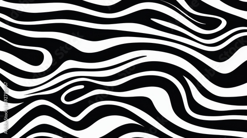 Wavy swirl brush trokes. Curved Lines. Black and White Wallpaper for design. Desktop Background. Design Template. Seamless design.