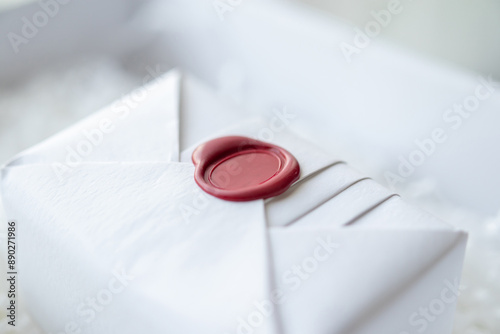 Wax seal stamp on white paper wrap packaging parcel box