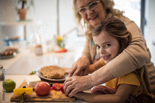 old, adult, bonding, bread, breakfast, cheerful, children, childhood, closeup, cut, cutting, family, female, food, fun, grandchild, granddaughter, grandmother, grandparent, happy, healthy, help, helping, home, indoor, children, kitchen, avocation, lifestyle, lunch, mature, meal, people, portrait, preparation, preparing, salad, senior, smiling, togetherness, two people, woman, vegetable