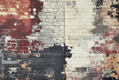 brick, wall, texture, paint, peeling, weathered, aged, grunge, rustic, background, abstract, red, black, white, grey, brown, vintage, distressed, mottled, faded, cracked, chipped, rough, uneven, surface, masonry, construction, building, architecture, industrial, urban, city, design, pattern, wallpaper, old, antique, history, decay, damage, imperfect, colours, shades, tone, contrast, element, material