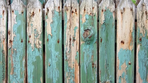 Weathered Wooden Fence with Peeling Paint and Rustic Charm