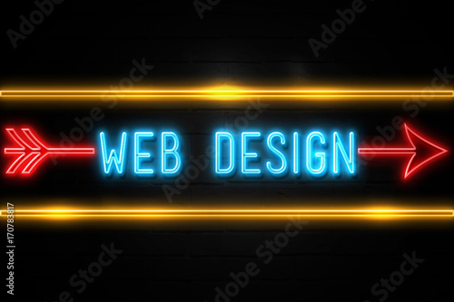Web Design - fluorescent Neon Sign on brickwall Front view