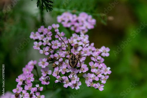 beetle, yarrow, flower, nature, purple, plant, summer, garden, pink, floral, flora