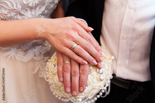 Wedding couple hands with wedding rings