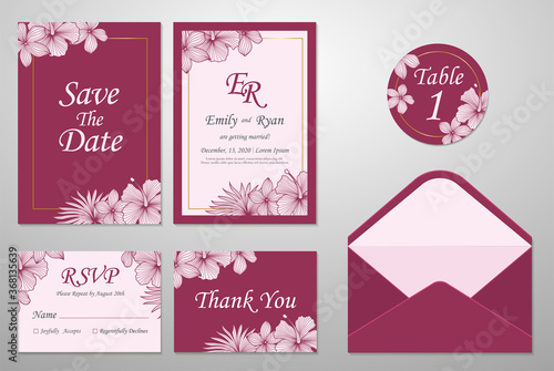 Wedding Invitation Card template, with leaf & floral background