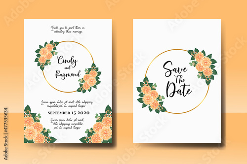 Wedding invitation frame set, floral watercolor Digital hand drawn Orange Dahlia Flower design Invitation Card Template