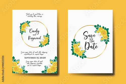 Wedding invitation frame set, floral watercolor Digital hand drawn Yellow Rose Flower design Invitation Card Template