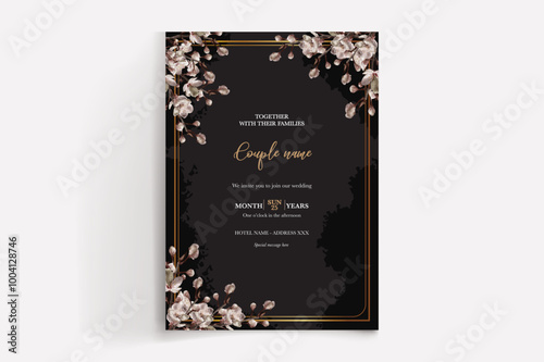 WEDDING INVITATION FRAME WITH FLOWER DECORATIONS WITH FRESH LEAVES