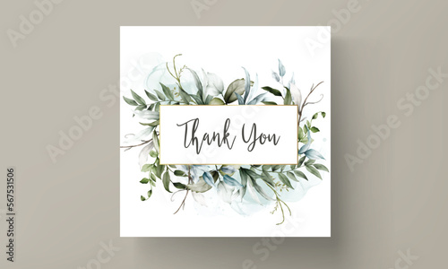 wedding invitation template with beautiful leaves watercolor