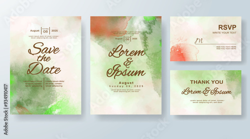 Wedding invitation with Abstract splashed watercolor background