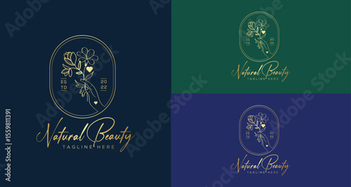 Wedding logos, botanical logo, floral frame for labels, hand drawn elegant, delicate and minimalist monogram collection. Botanical vector design