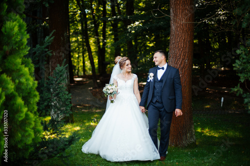 Wedding wedding day beautiful bride and elegant groom walking after wedding luxury