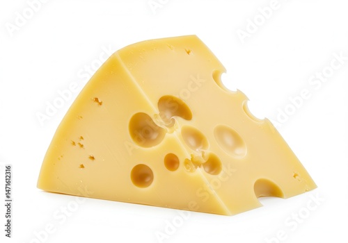 cheese, swiss, wedge, dairy, food, yellow, hole, isolated, background, closeup, nourishment, delicious, epicure, ingredient, texture, white, block, diet, macro, portion, cut, fresh, product, studio, object, piece, shape, triangle