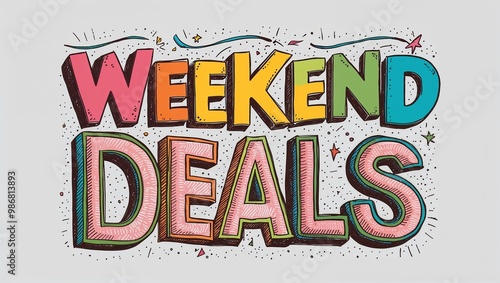 weekend, deal, colourful, hand, drawn, lettering, art, design, plain, white, background, signs, text, card, christmas, illustration, happy, concept, vector, celebration, sale, holiday, party, new, year, vintage, birthday, business, word, neon, poster, 2013, symbol, letter, christmas