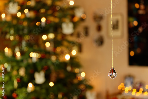 Weihnachtlich erleuchtetes Interieur mit geschliffenem Glas-Kristall-Anhänger