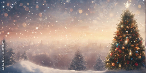 Weihnachtliche Stimmung mit leuchtendem Christbaum im freien