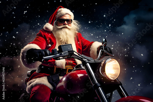 Weihnachtsmann auf Motorrad unterwegs 1, Generative KI