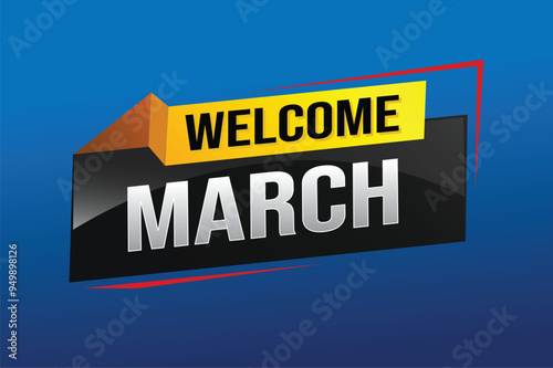 welcome march word text concept icon logo sign symbol vector note 3d style for use landing page, template, social media, web, mobile app, poster, banner, flyer, background, gift card, coupon