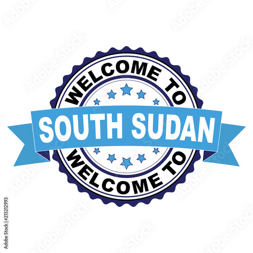 Welcome to South Sudan blue black rubber stamp illustration vector on white background
